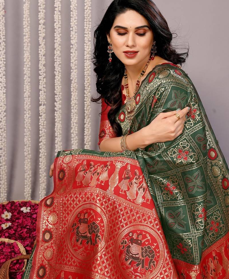 | Product Name | Green Soft Art Silk Banarasi Saree With Blouse | |