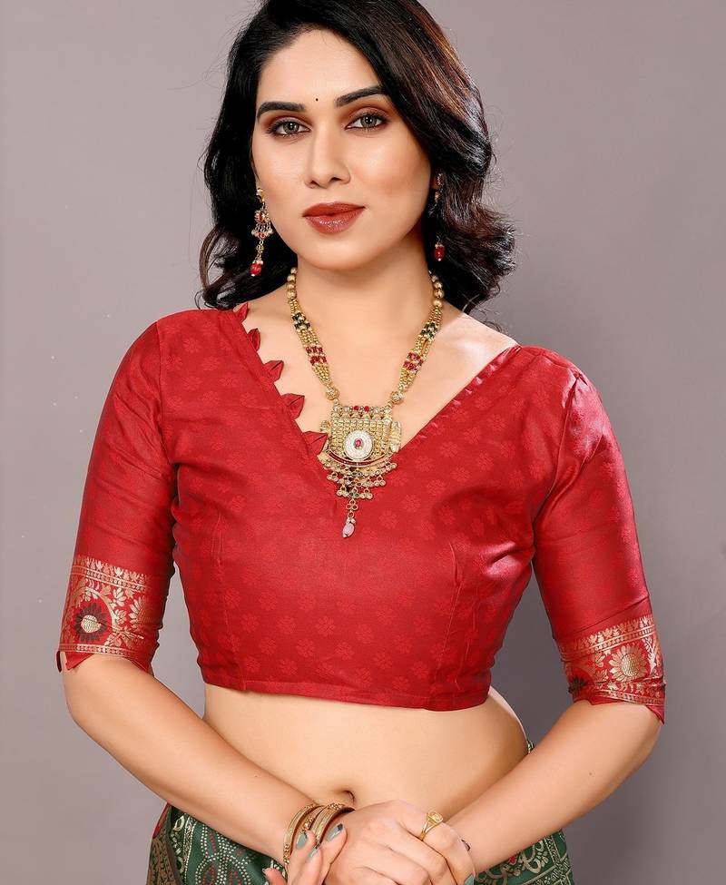 | • | Blouse | : | Color- Red / Fabric- Banarasi Silk |