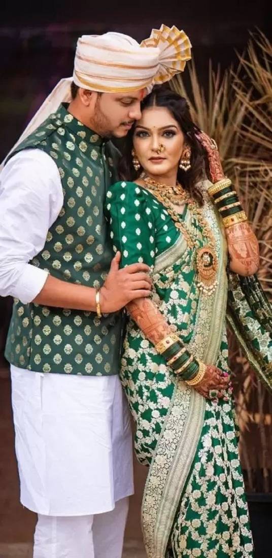 Green soft silk blend banarasi jacuard work designer party wear saree with unstitched blouse piece