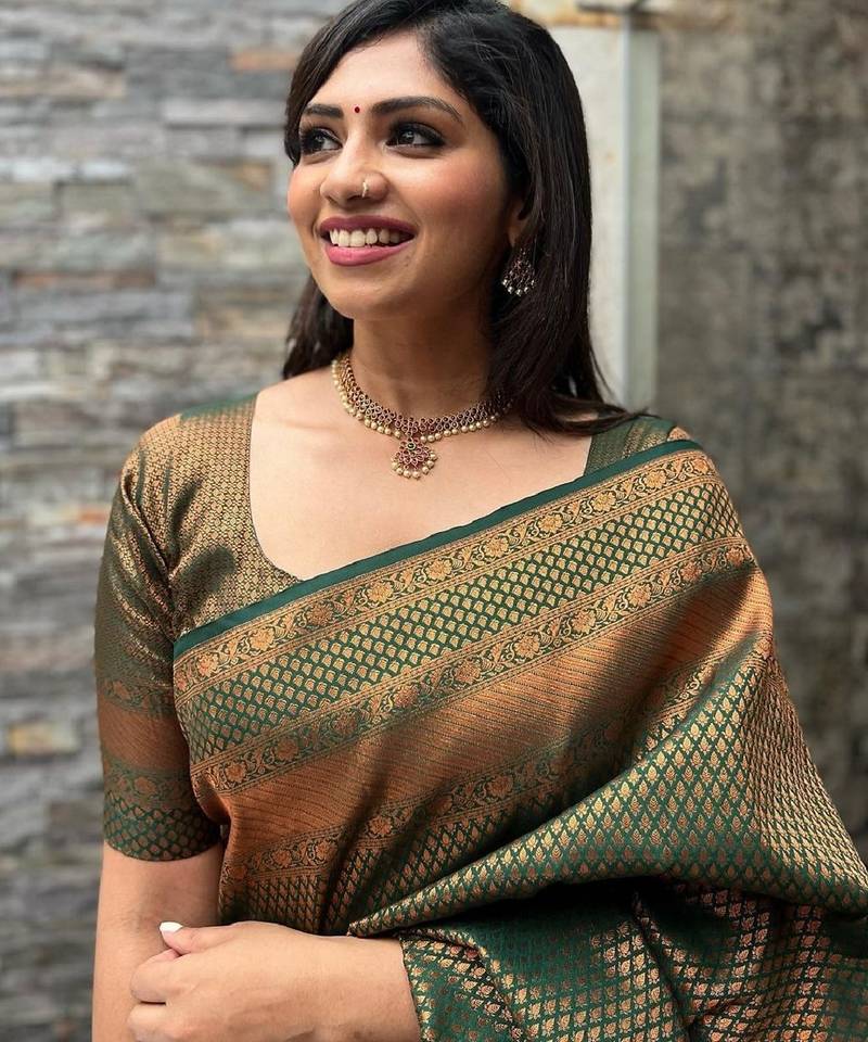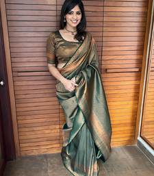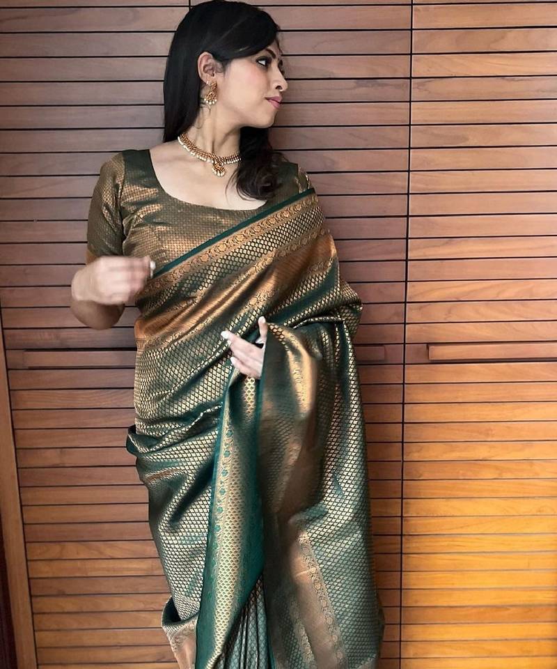 Green soft art silk banarasi jacuard work designer party wear saree with unstitched blouse piece