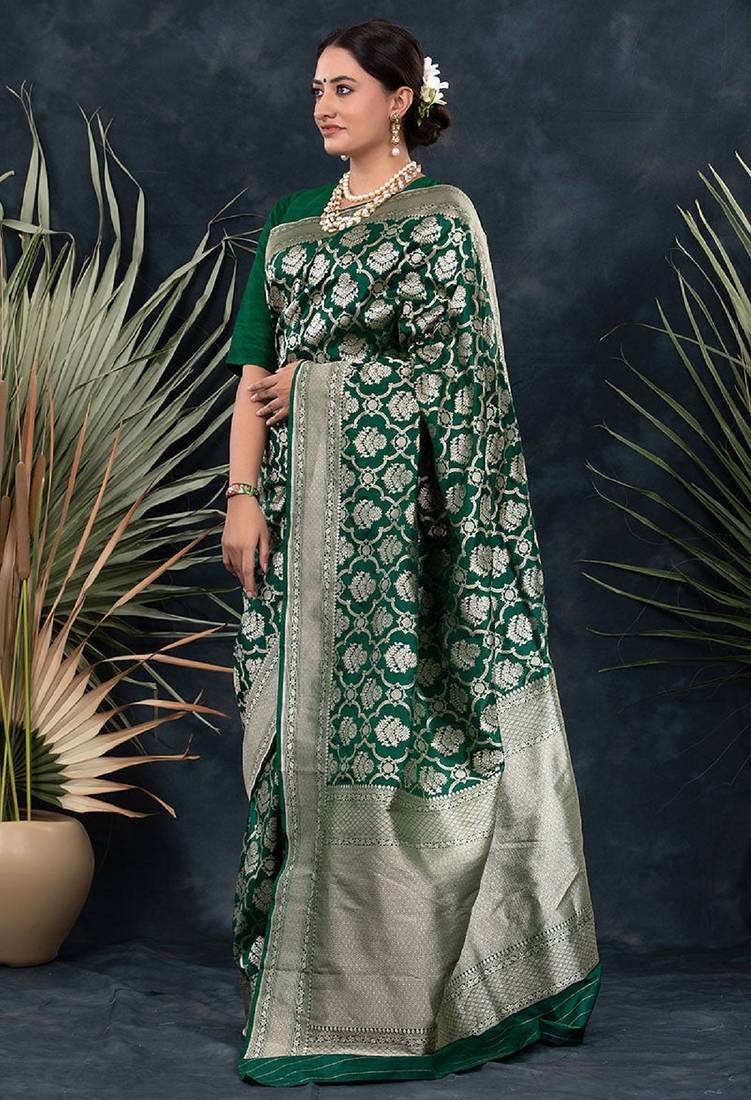 | Product Name | Green Soft Silk Blend Banarasi Jacuard Work Designer Party Wear Saree With Unstitched Blouse Piece | |