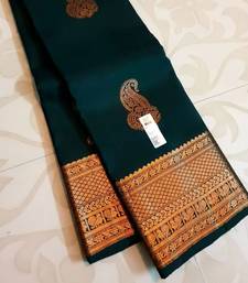Green soft silk blend banarasi jacuard work designer party wear saree with unstitched blouse piece
