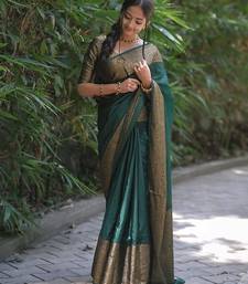 Green soft art silk banarasi jacuard work designer party wear saree with unstitched blouse piece