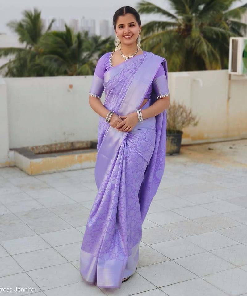 lavender soft art silk banarasi saree with blouse