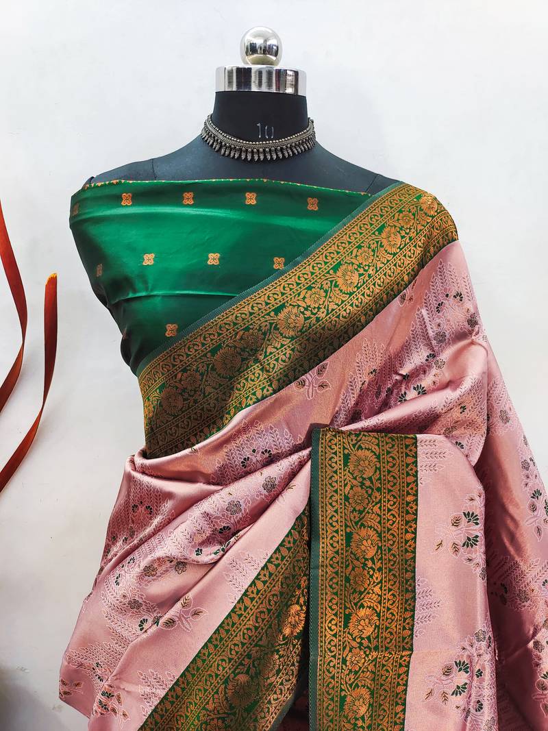 Light pink graan soft art silk banarasi jacuard work designer party wear saree with unstitched blouse piece