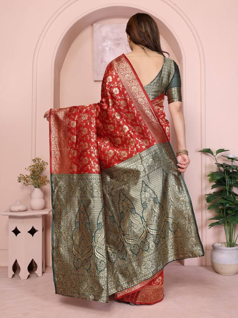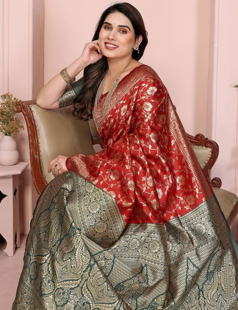 Maroon soft art silk banarasi saree with blouse