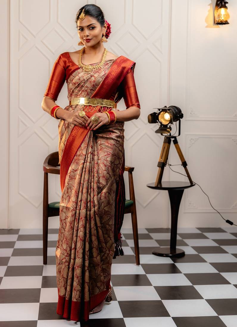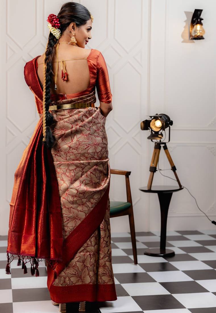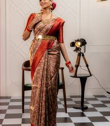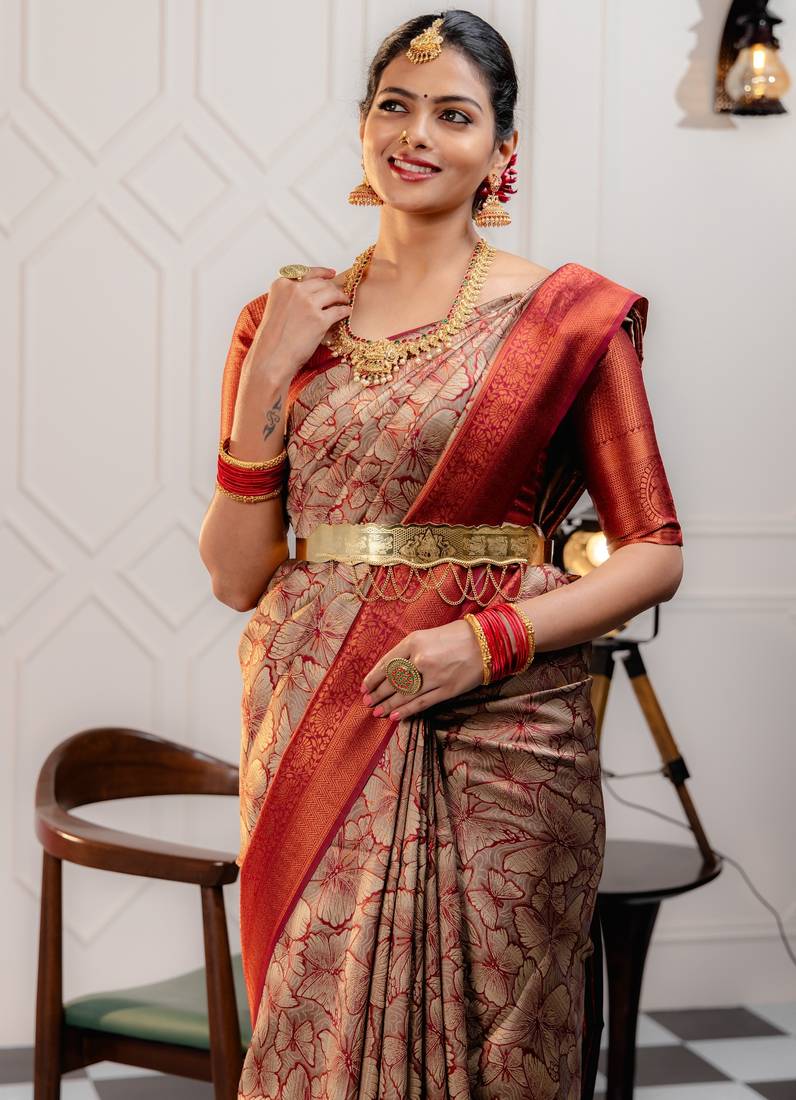 Maroon soft art silk banarasi jacuard work designer party wear saree with unstitched blouse piece