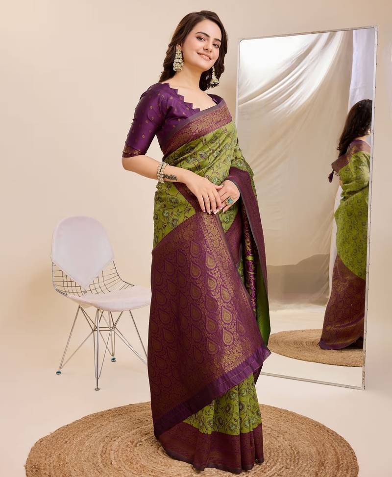 Saree : Color- Mehendi / Fabric- Banarasi Silk