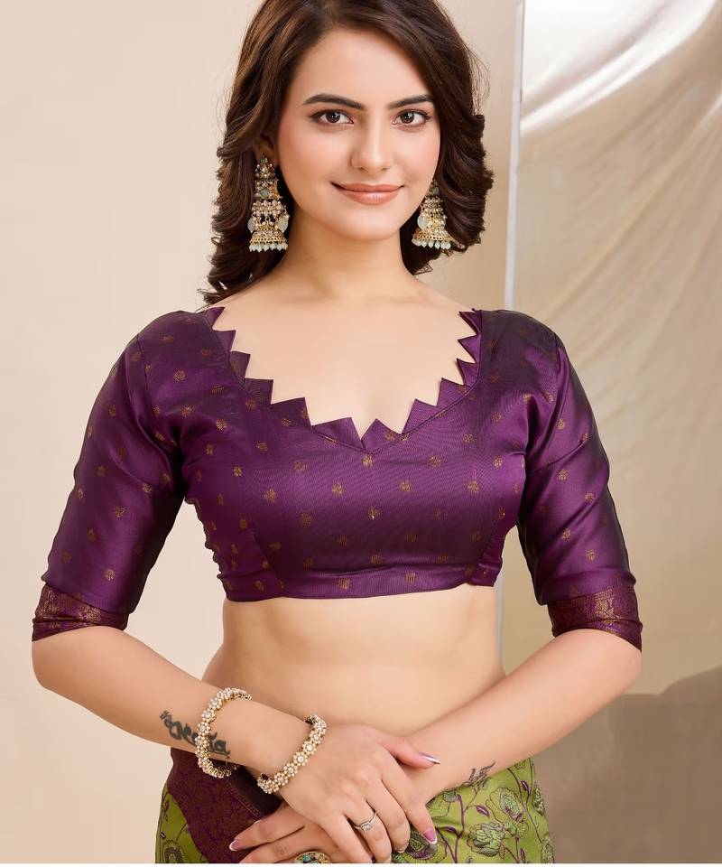 Blouse : Color- Wine / Fabric- Banarasi Silk
