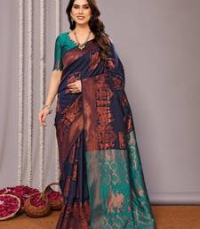 Navy blue soft art silk banarasi saree with blouse