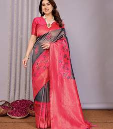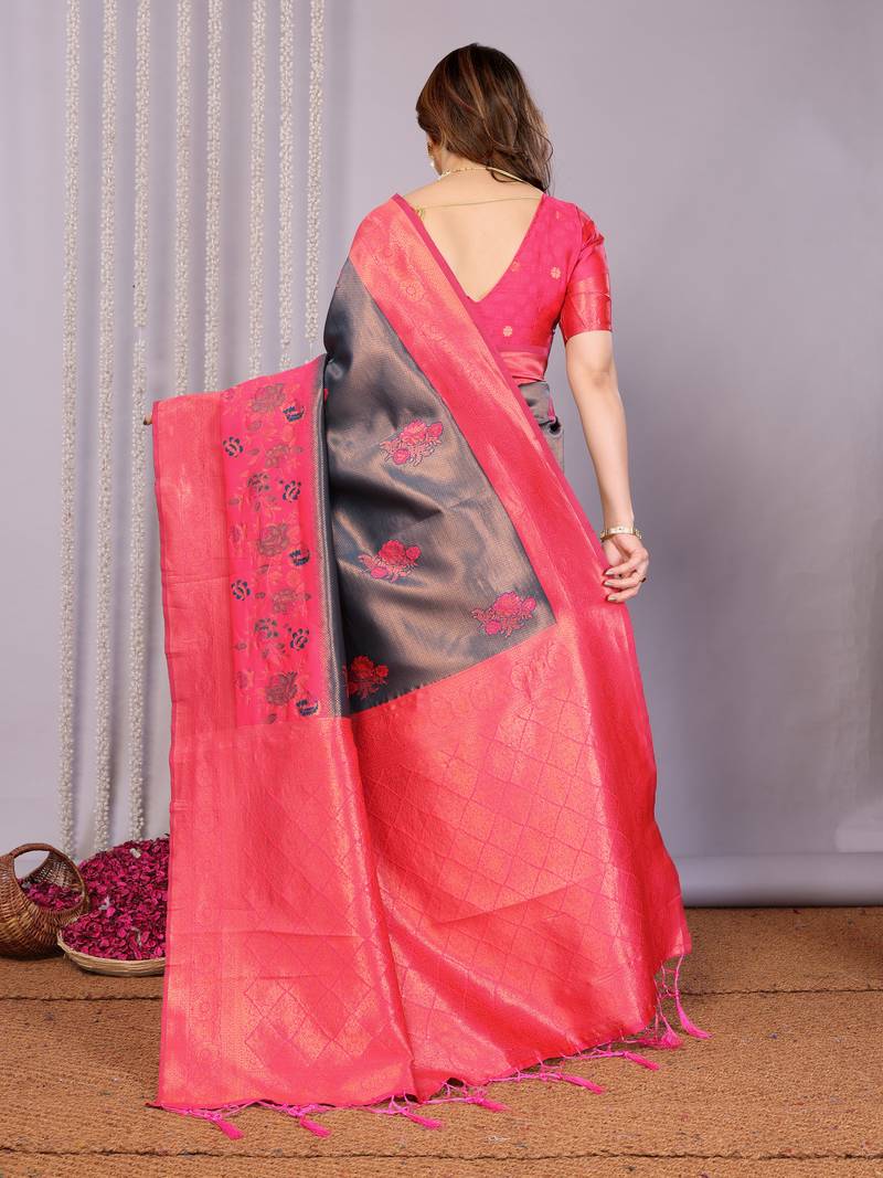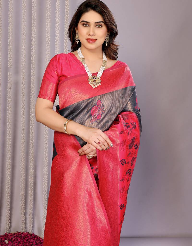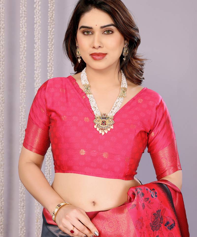 Neavy blue pink soft art silk blend banarasi jacuard work designer party wear saree with unstitched blouse piece