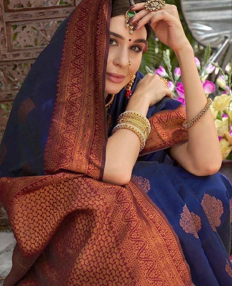 | Product Name | Neavy Blue Wine Soft Art Silk Blend Banarasi Jacuard Work Designer Party Wear Saree With Unstitched Blouse Piece | |