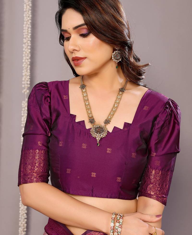 | Product Name | Peach Wine Soft Art Silk Banarasi Jacuard Work Designer Party Wear Saree With Unstitched Blouse Piece | |