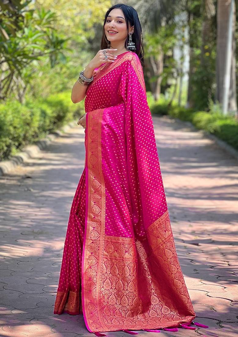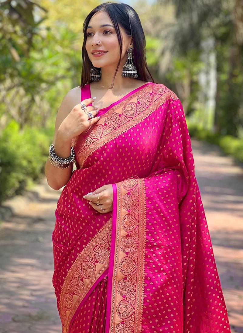| Product Name | Pink Soft Silk Blend Banarasi Jacuard Work Designer Party Wear Saree With Unstitched Blouse Piece | |