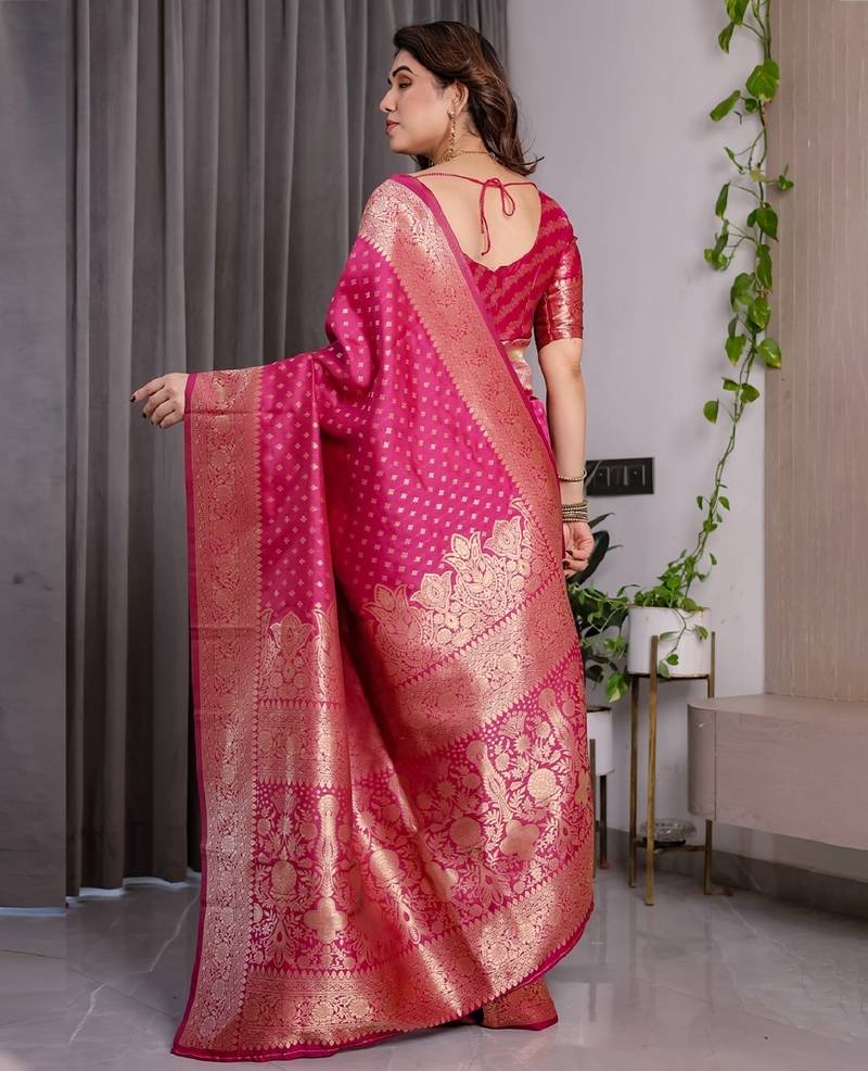 | Product Name | Pink Soft Art Silk Banarasi Jacuard Work Designer Party Wear Saree With Unstitched Blouse Piece | |