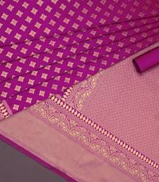 Pink soft silk blend banarasi jacuard work designer party wear saree with unstitched blouse piece