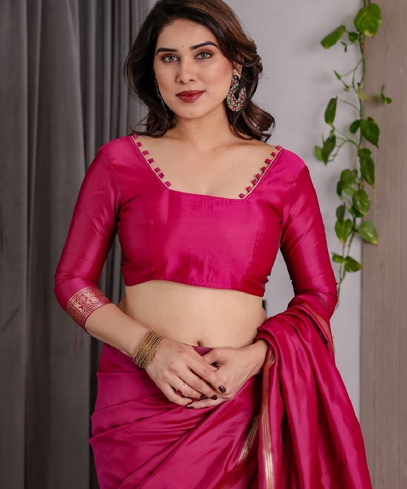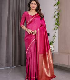 Pink soft art silk banarasi jacuard work designer party wear saree with unstitched blouse piece