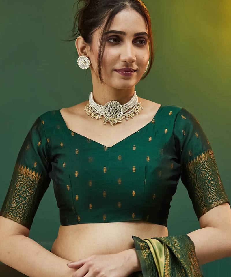 | • | Blouse | : | Color- Green / Fabric- Banarasi Silk |