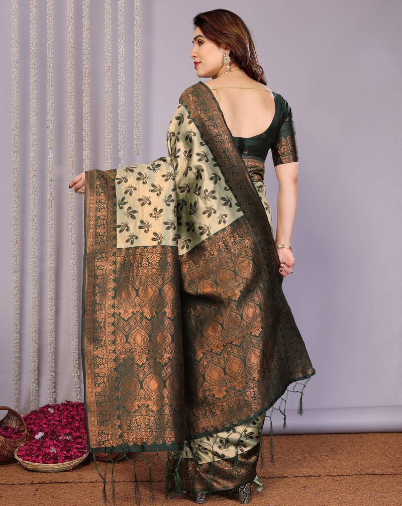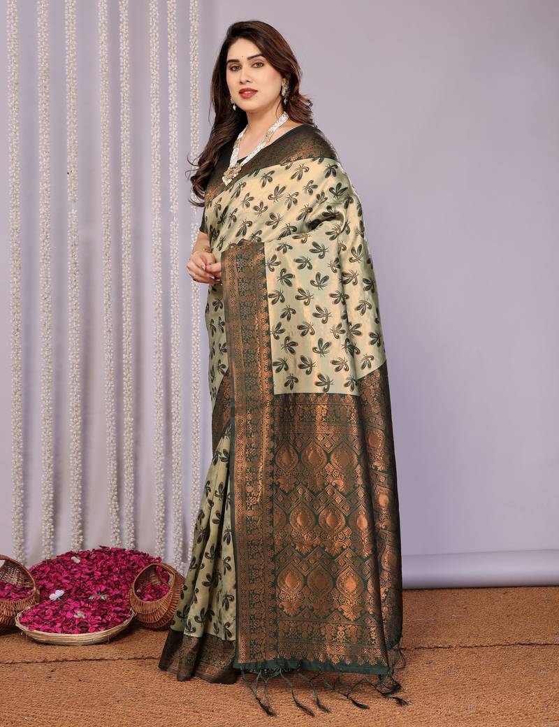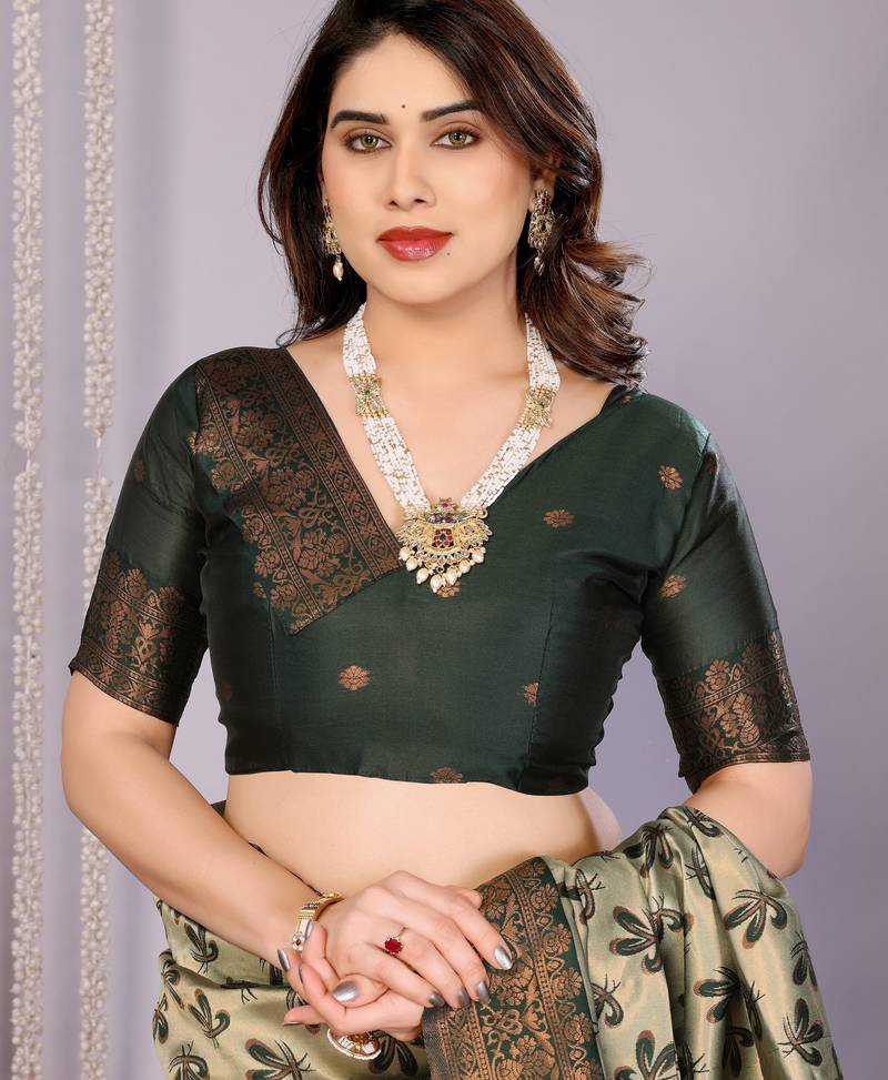 Pista green soft art silk blend banarasi jacuard work designer party wear saree with unstitched blouse piece