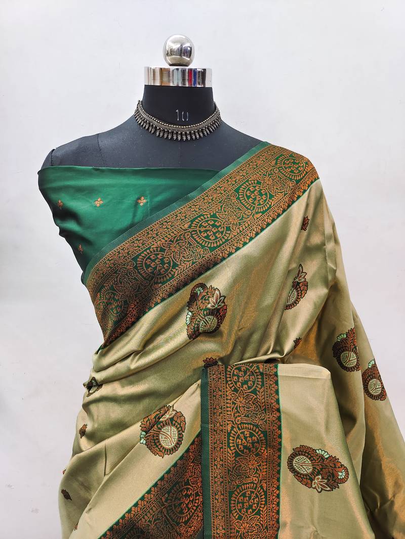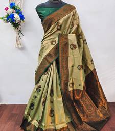 Pista green soft silk blend banarasi jacuard work designer party wear saree with unstitched blouse piece