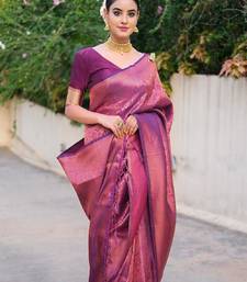 purple soft art silk banarasi jacuard work designer party wear saree with unstitched blouse piece