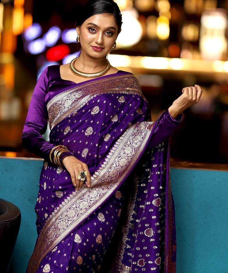 Saree : Color- Purple / Fabric- Banarasi Silk