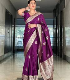 Purple soft silk blend banarasi jacuard work designer party wear saree with unstitched blouse piece