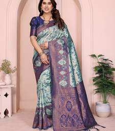 rama blue  soft art silk blend banarasi jacuard work designer party wear saree with unstitched blouse piece