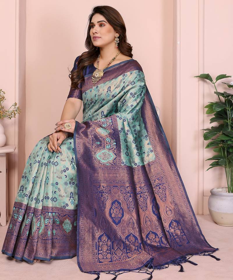 Saree : Color- Turquoise / Fabric- Banarasi Silk