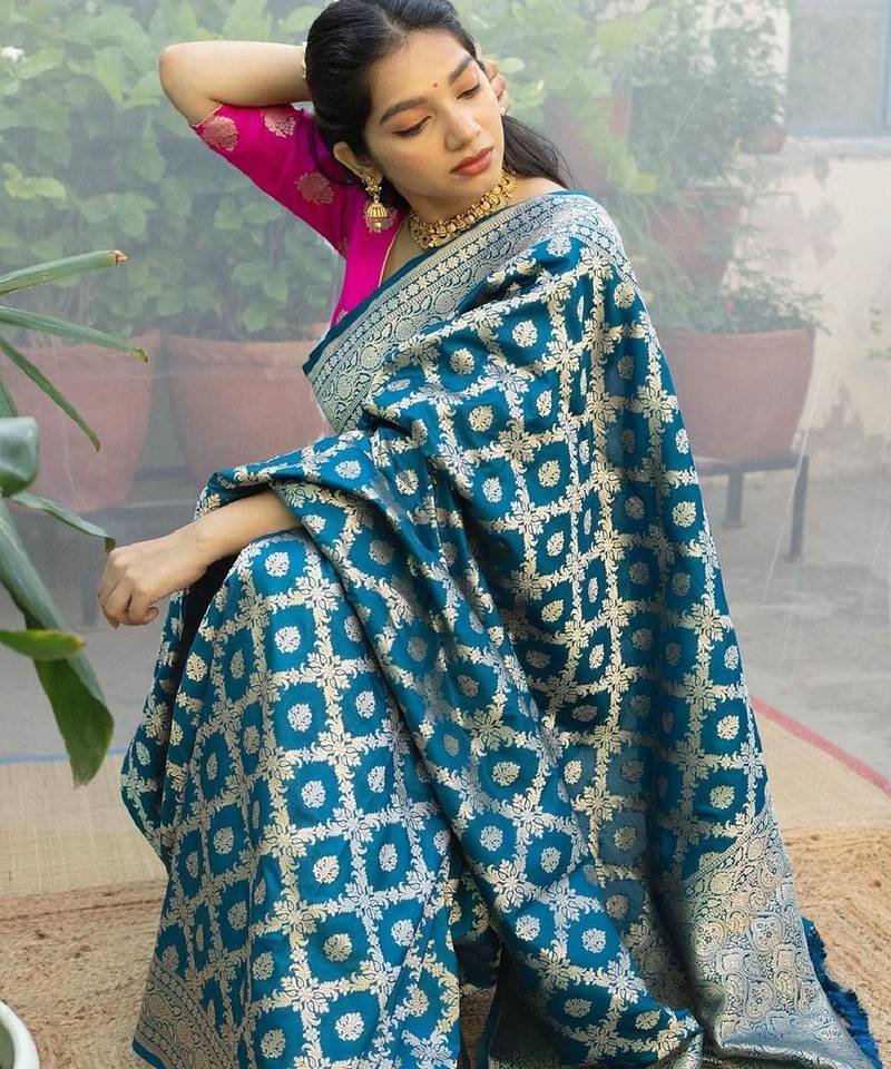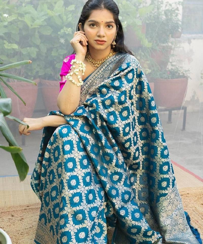 | • | Saree | : | Color- Turquoise / Fabric- Banarasi Silk |