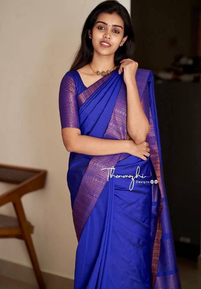 Royal blue soft art silk banarasi jacuard work designer party wear saree with unstitched blouse piece