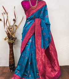 Sky blue pink   soft silk blend banarasi jacuard work designer party wear saree with unstitched blouse piece
