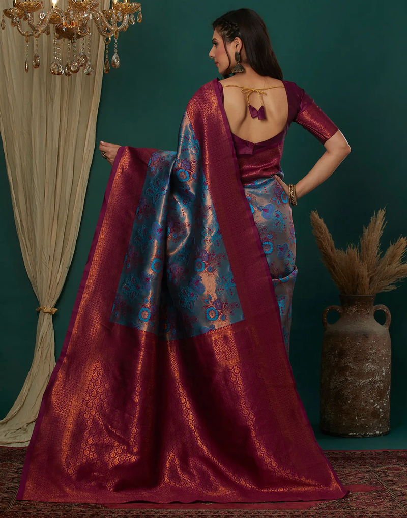 | • | Saree | : | Color- Sky Blue / Fabric- Banarasi Silk |