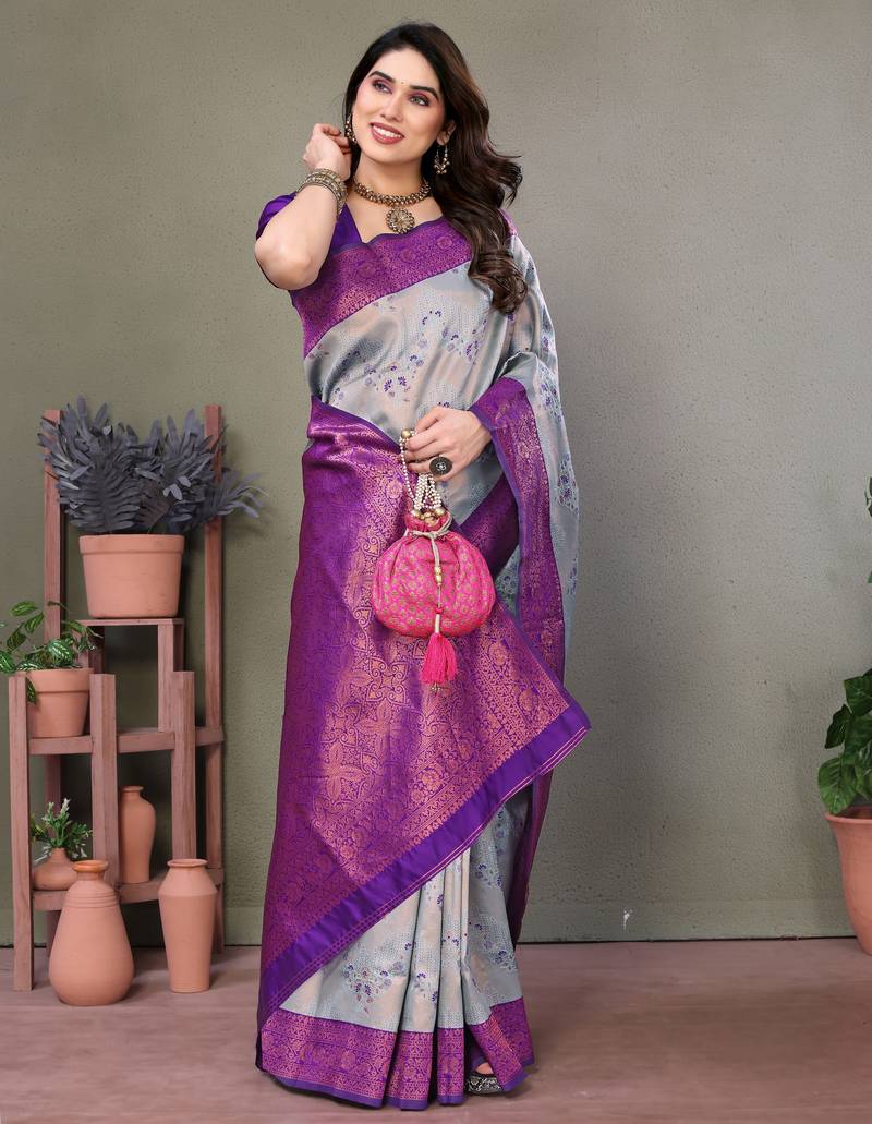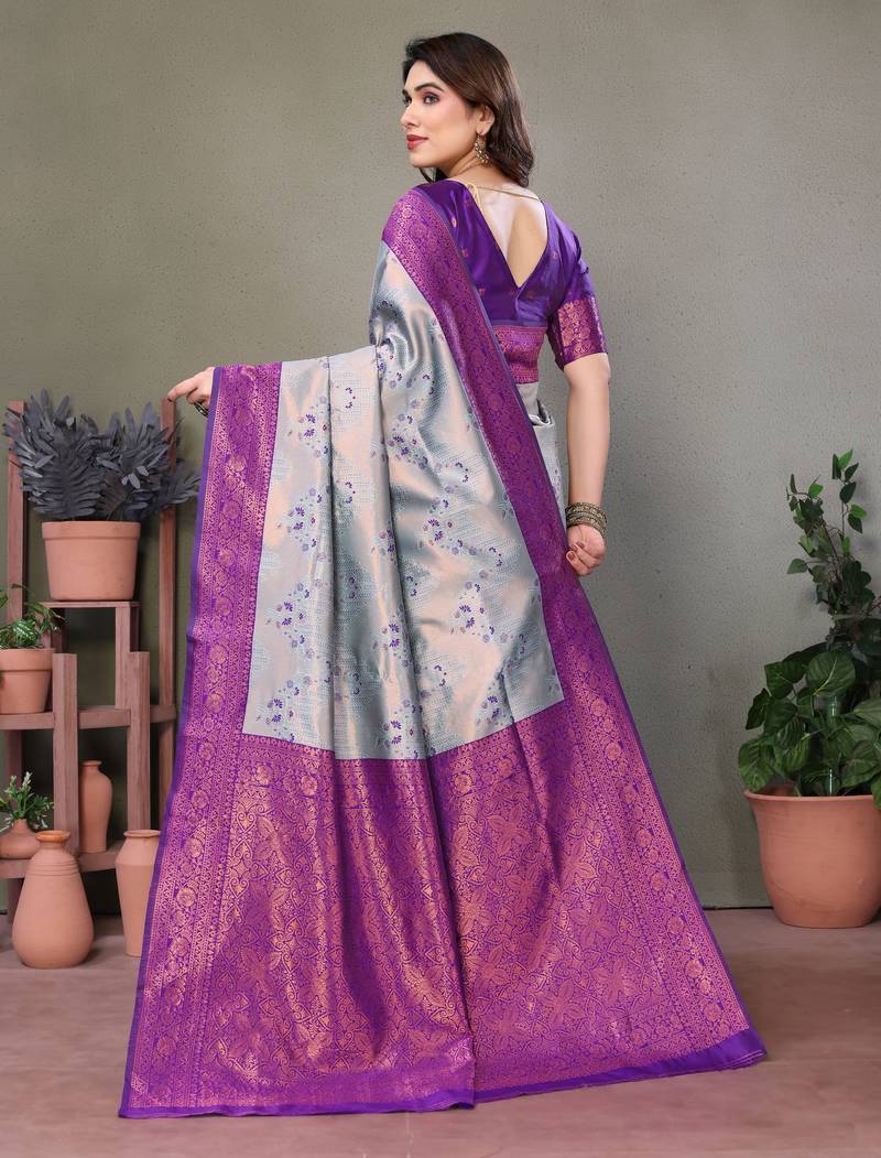 Product Name Sky Purple Soft Art Silk Banarasi Jacuard Work Designer Party Wear Saree With Unstitched Blouse Piece