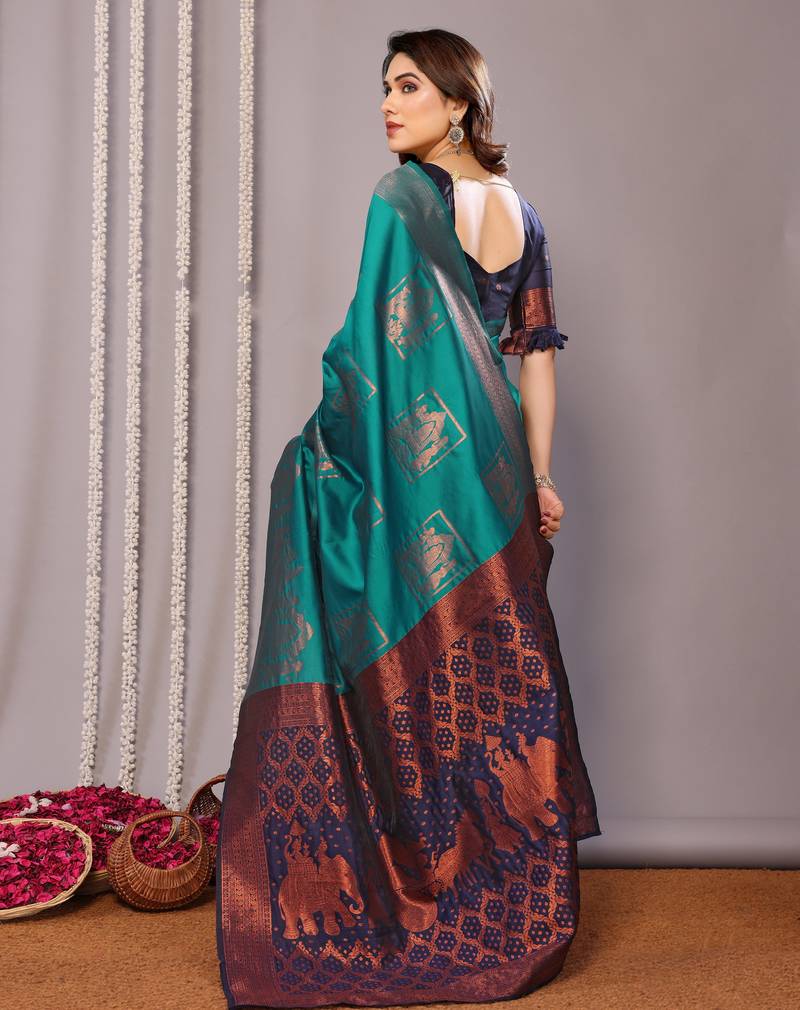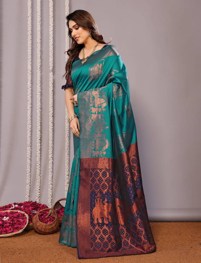 | Product Name | Turquoise Soft Art Silk Banarasi Saree With Blouse | |