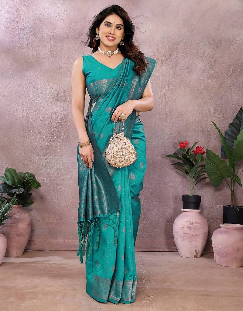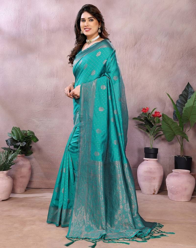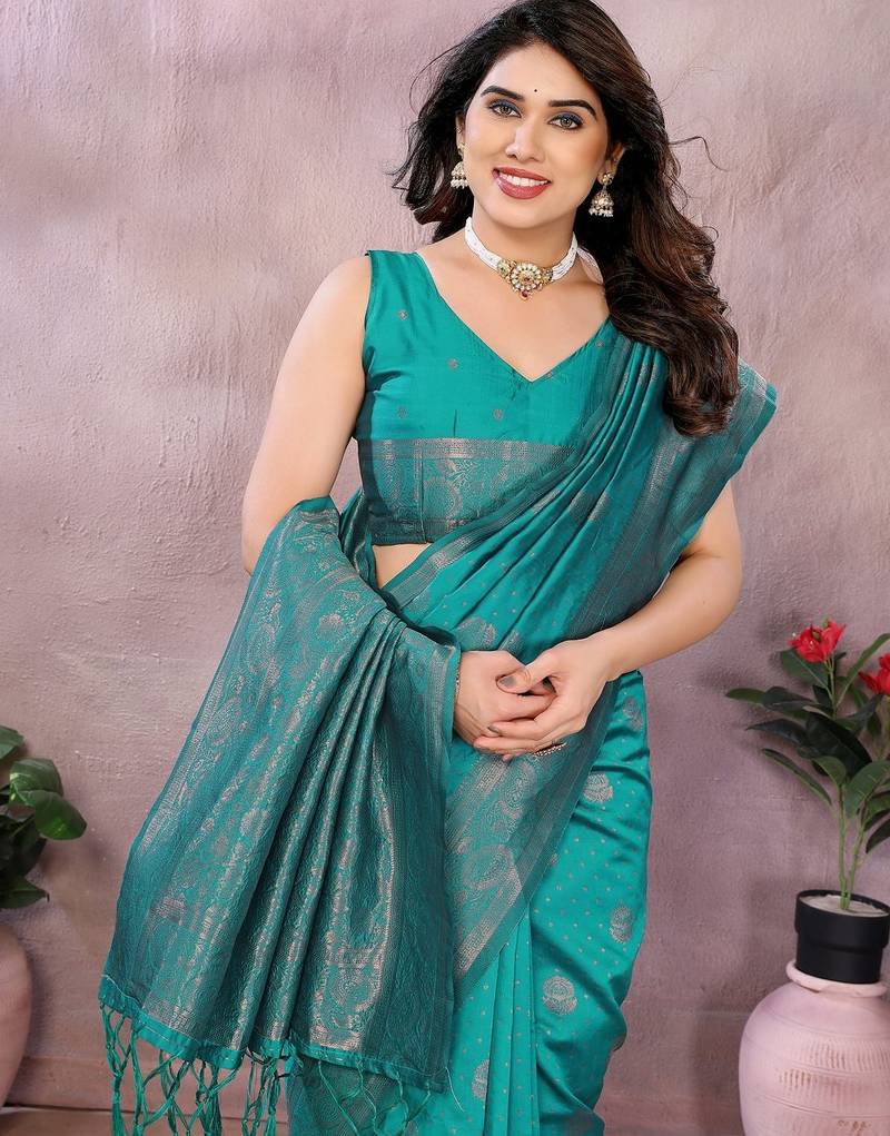 | Product Name | Turquoise Soft Art Silk Banarasi Saree With Blouse | |