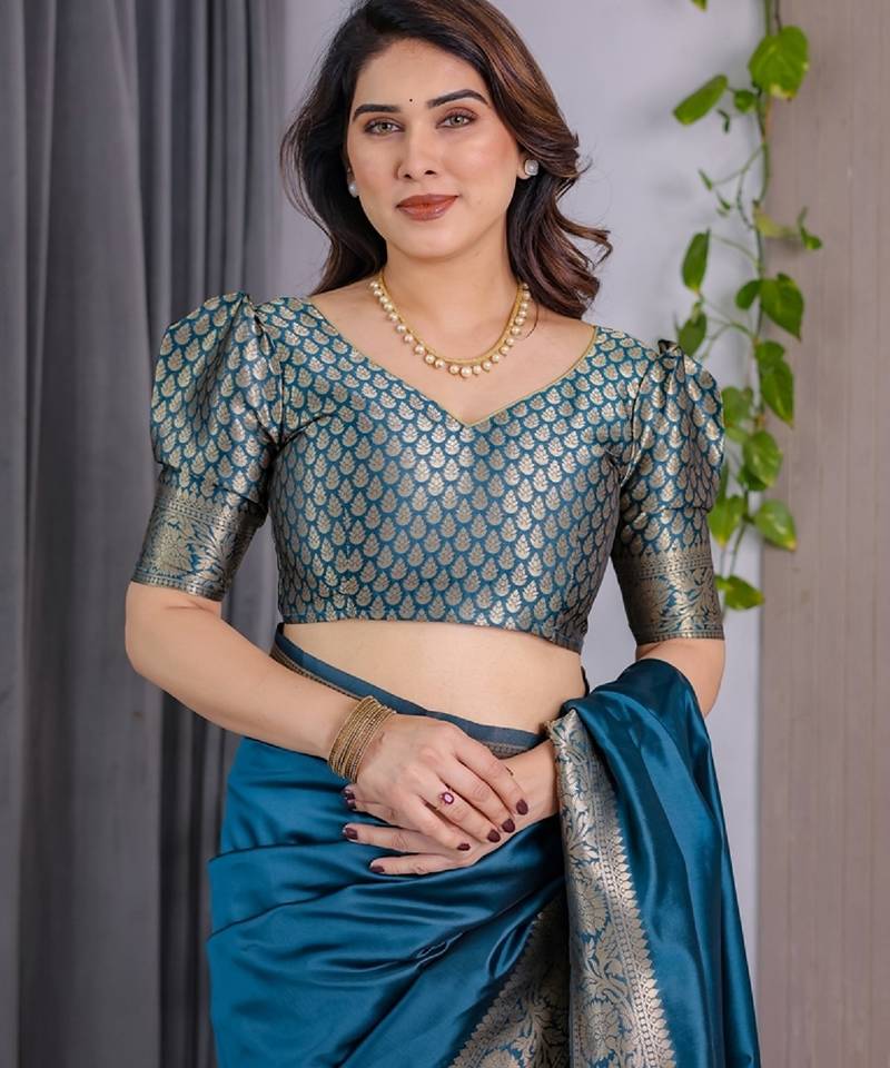 | Product Name | Turquoise Soft Art Silk Banarasi Jacuard Work Designer Party Wear Saree With Unstitched Blouse Piece | |