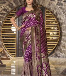 Wine copper soft silk blend banarasi jacuard work designer party wear saree with unstitched blouse piece