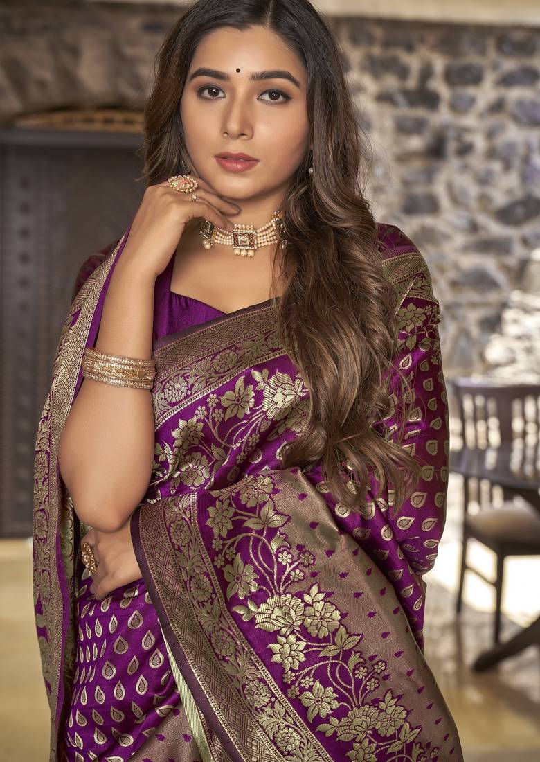 | Product Name | Wine Copper Soft Silk Blend Banarasi Jacuard Work Designer Party Wear Saree With Unstitched Blouse Piece | |