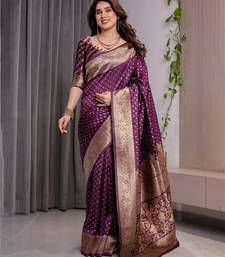 Wine soft art silk banarasi jacuard work designer party wear saree with unstitched blouse piece