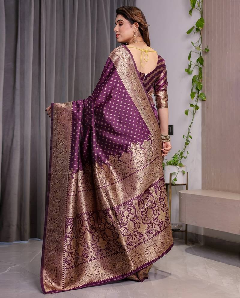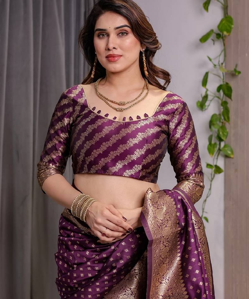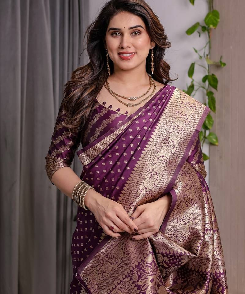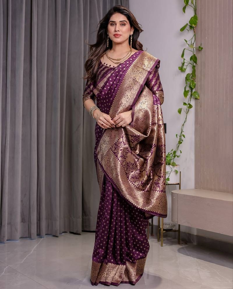 | Product Name | Wine Soft Art Silk Banarasi Jacuard Work Designer Party Wear Saree With Unstitched Blouse Piece | |