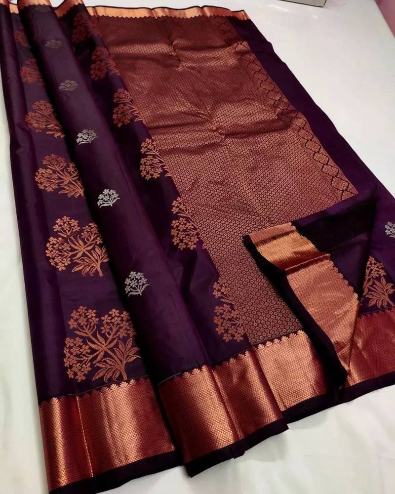 Wine soft silk blend banarasi jacuard work designer party wear saree with unstitched blouse piece