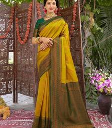 Yellow green soft art silk blend banarasi jacuard work designer party wear saree with unstitched blouse piece
