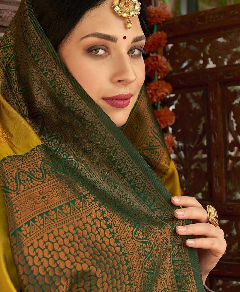 | Product Name | Yellow Green Soft Art Silk Blend Banarasi Jacuard Work Designer Party Wear Saree With Unstitched Blouse Piece | |
