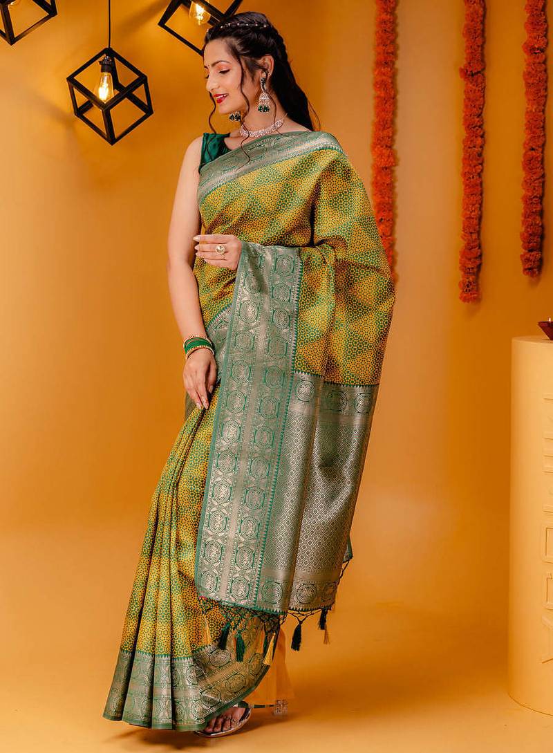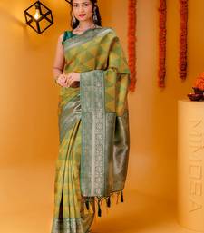 Yellow soft art silk banarasi saree with blouse
