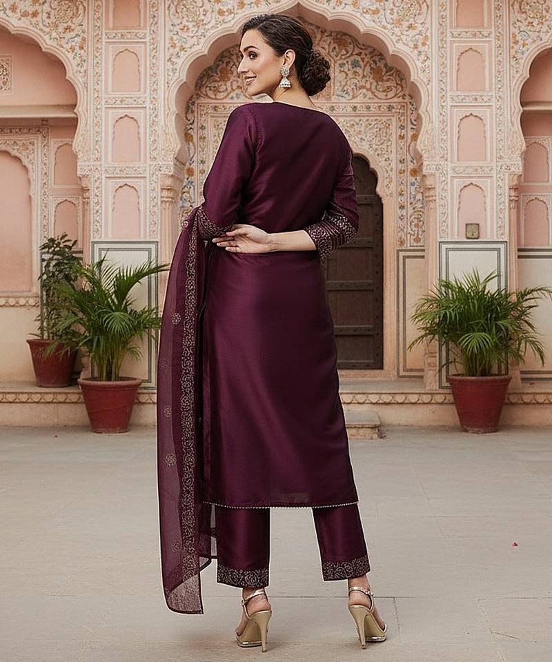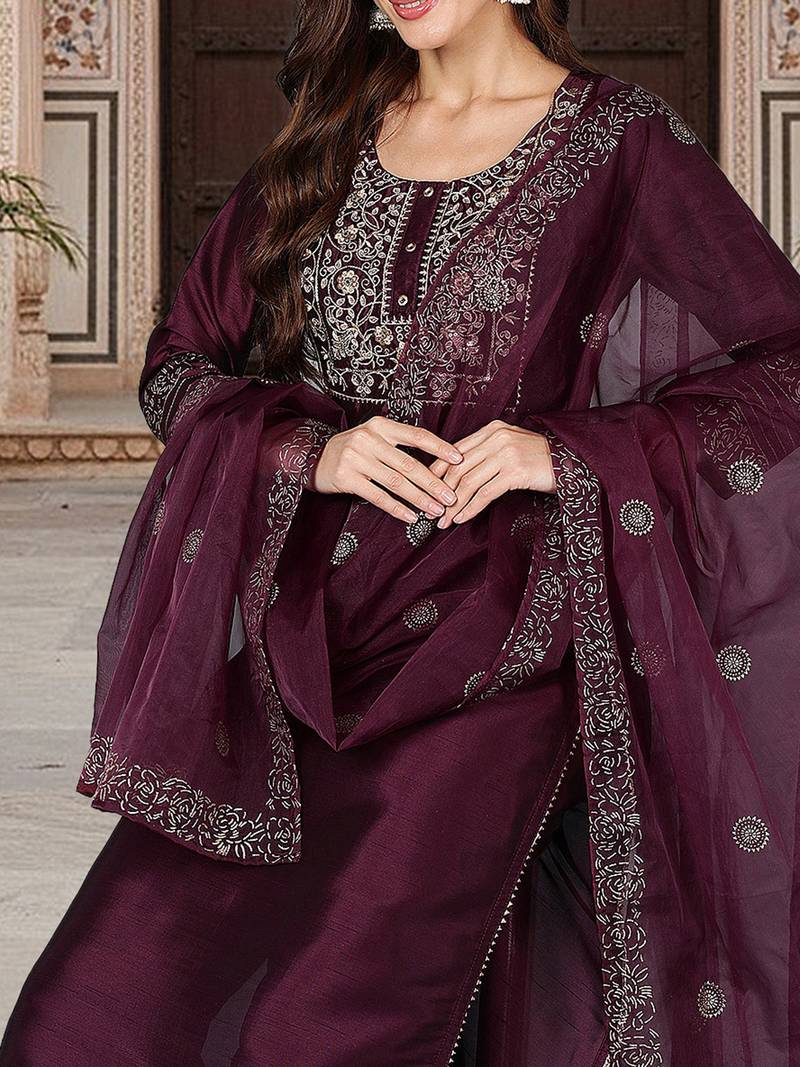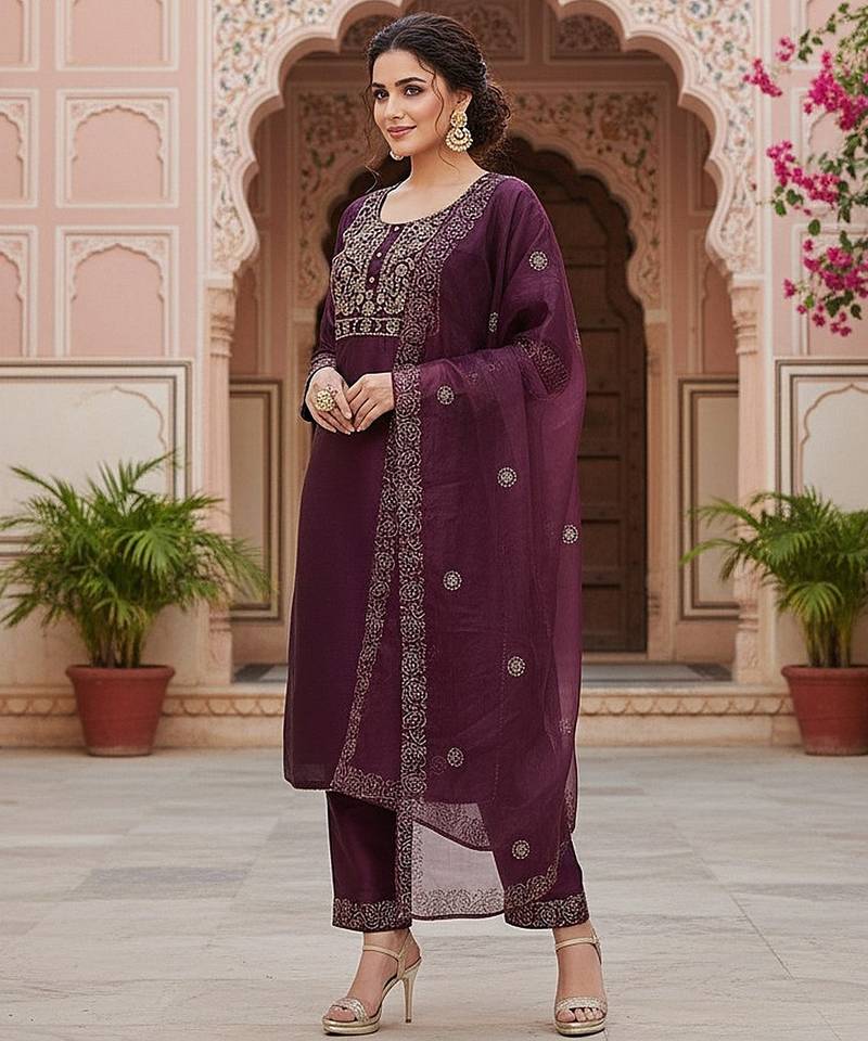 Product Name | Purple Color Embroidered Silk Blend Styles Kurta Trouser With Dupatta | |