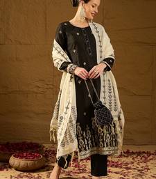 | Product Name | Women Black Chanderi Woven Design Straight Kurta Trouser With Dupatta | |