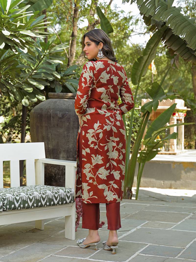 | Product Name | Women Brown Viscose Rayon Embroidered Straight Kurta Trousers With Dupatta | |