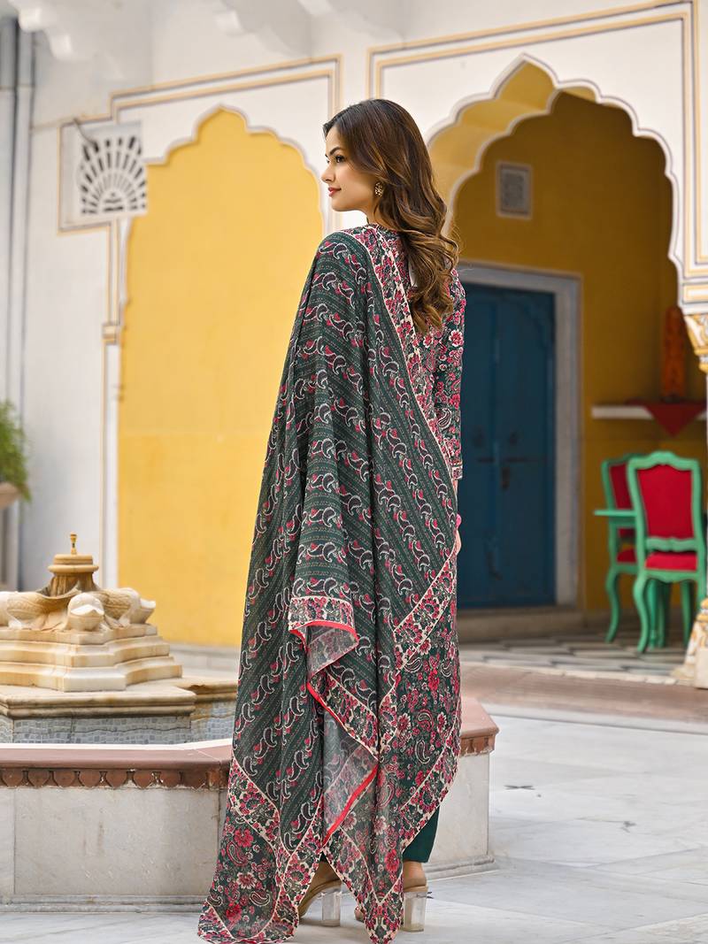 | Product Name | Women Green Rayon Blend Floral Printed Straight Kurta Trousers With Dupatta | |