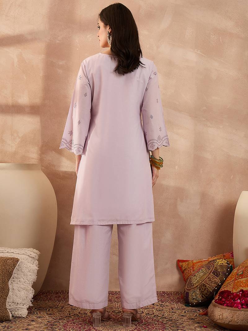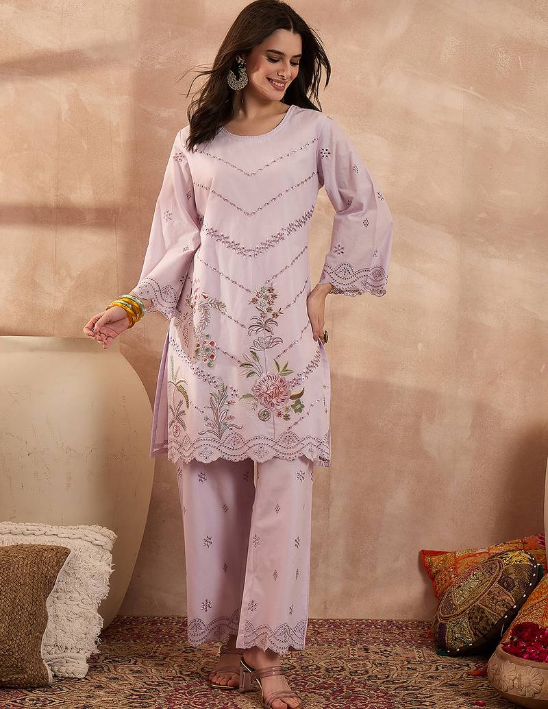 | Product Name | Women Lavender Pure Cotton Embroidered Scalloped Coord Sets | |